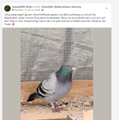Wer vermisst seine Taube?Gesichert in Barbis im Drosselweg