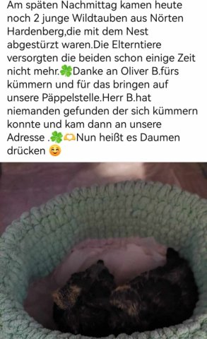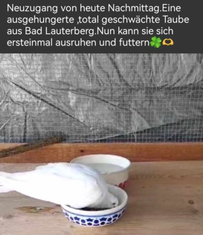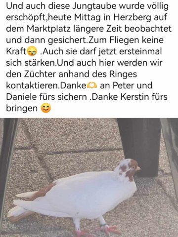 Türken Taube aus Göttingen Neuzugang Scharzfeld Päppelstation