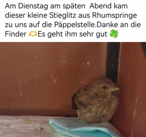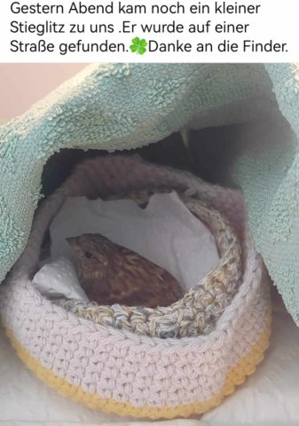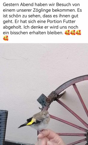 Stieglitz darf in die Freiheit. 01.07.2023 Machs gut und viel Glück